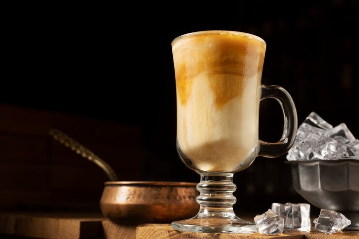 1 Eßlöffel geröstete, zerkleinerte Haselnüsse, 1 Teelöffel Pulverkaffee, 2 Teelöffel Zucker mit 1 knappen Glas Milch im Mixgerät verquirlen und in ein Glas gießen.