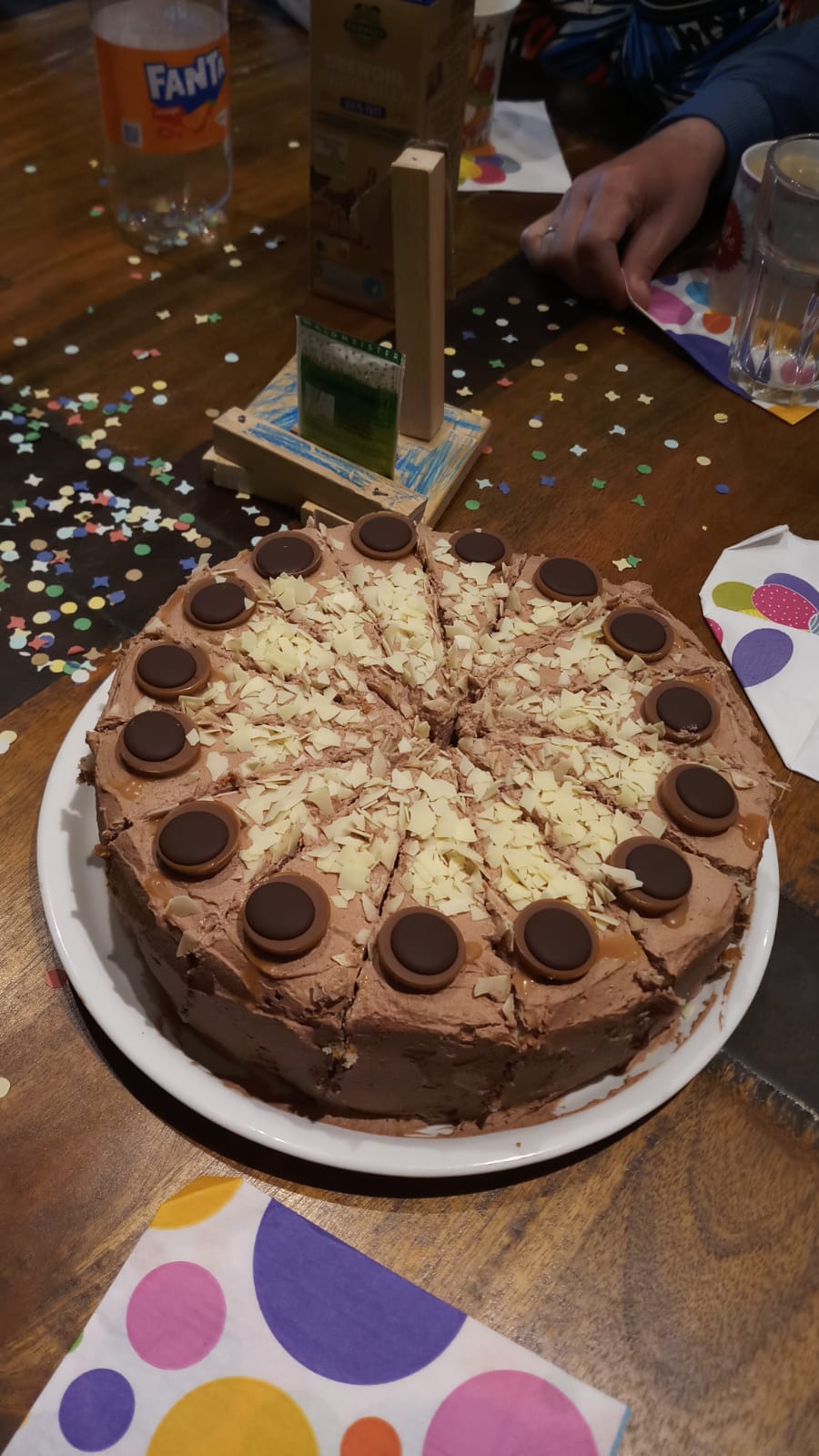 Die Torte mit Toffifee und/oder Schokoraspeln verzieren.